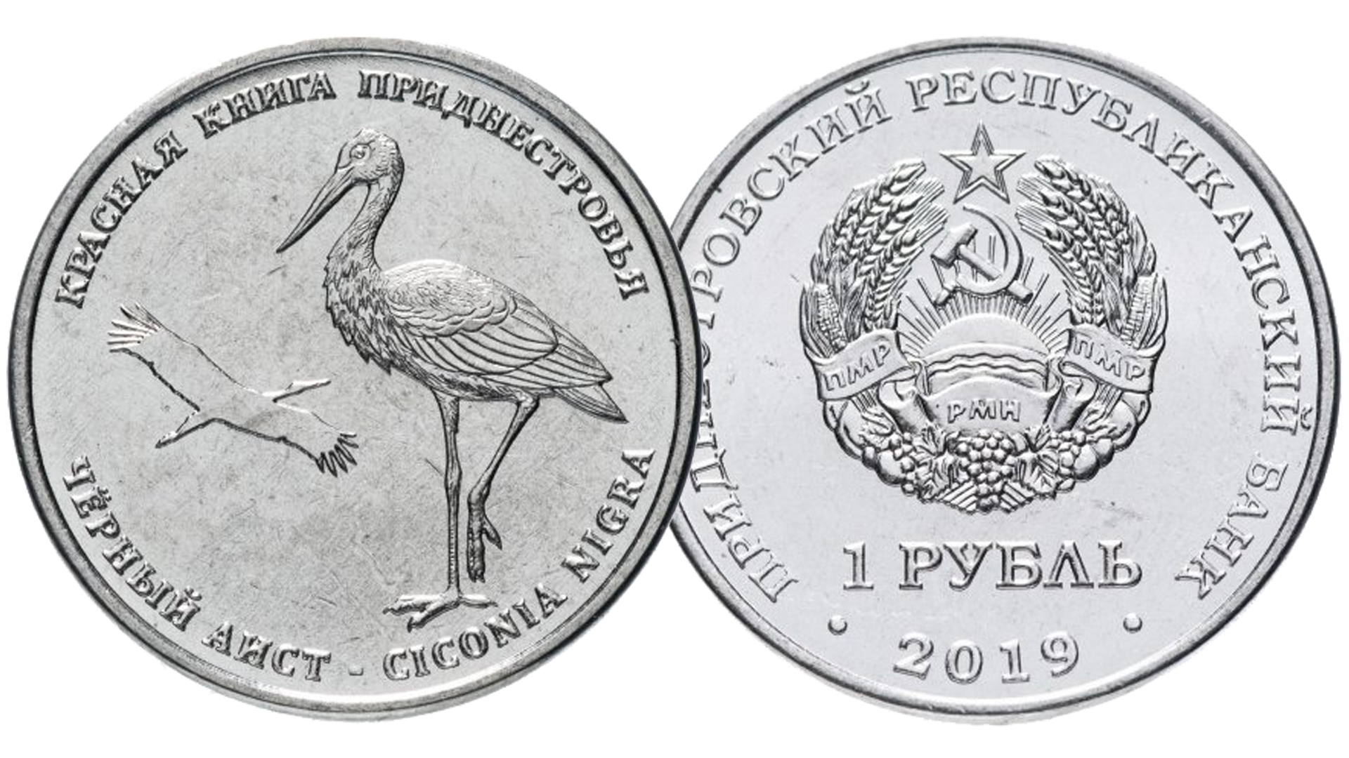 Монета 1 рубль Приднестровья Черный аист.