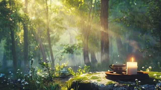 봄비 속 피아노 선율, 숲속의 휴식과 따뜻한 차 한잔