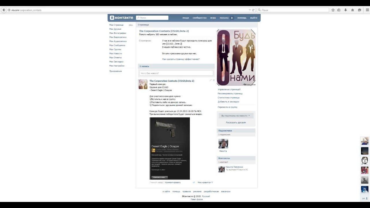 Привет вступи в группе с конкурсами в ВК. Группа - http://vk.com/corporation_contests И подпишись на канал.