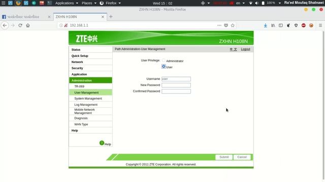 كيفية معرفة باسوورد لوحة التحكم الخاصة ب مودم راوتر zte h108n داخل الشبكة المحلية