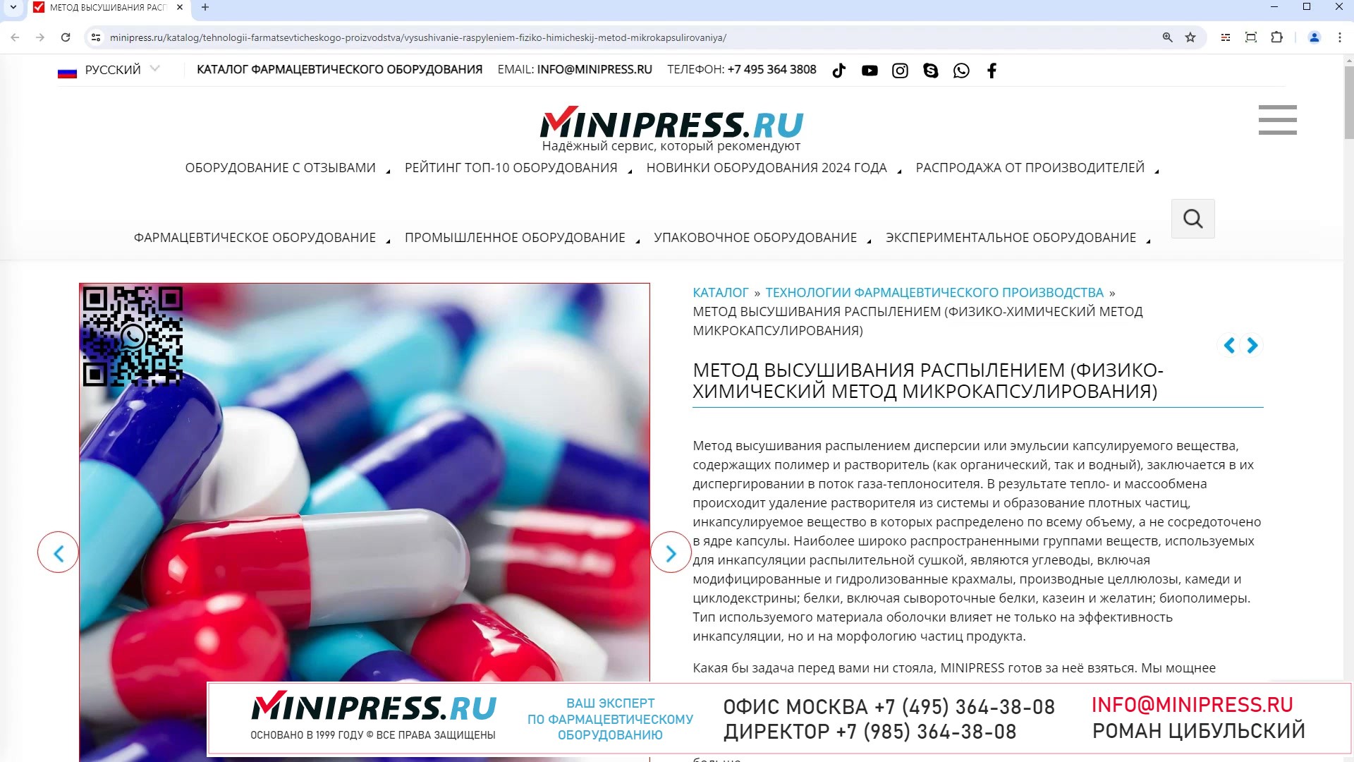 Minipress.ru Метод высушивания распылением (физико-химический метод микрокапсулирования)