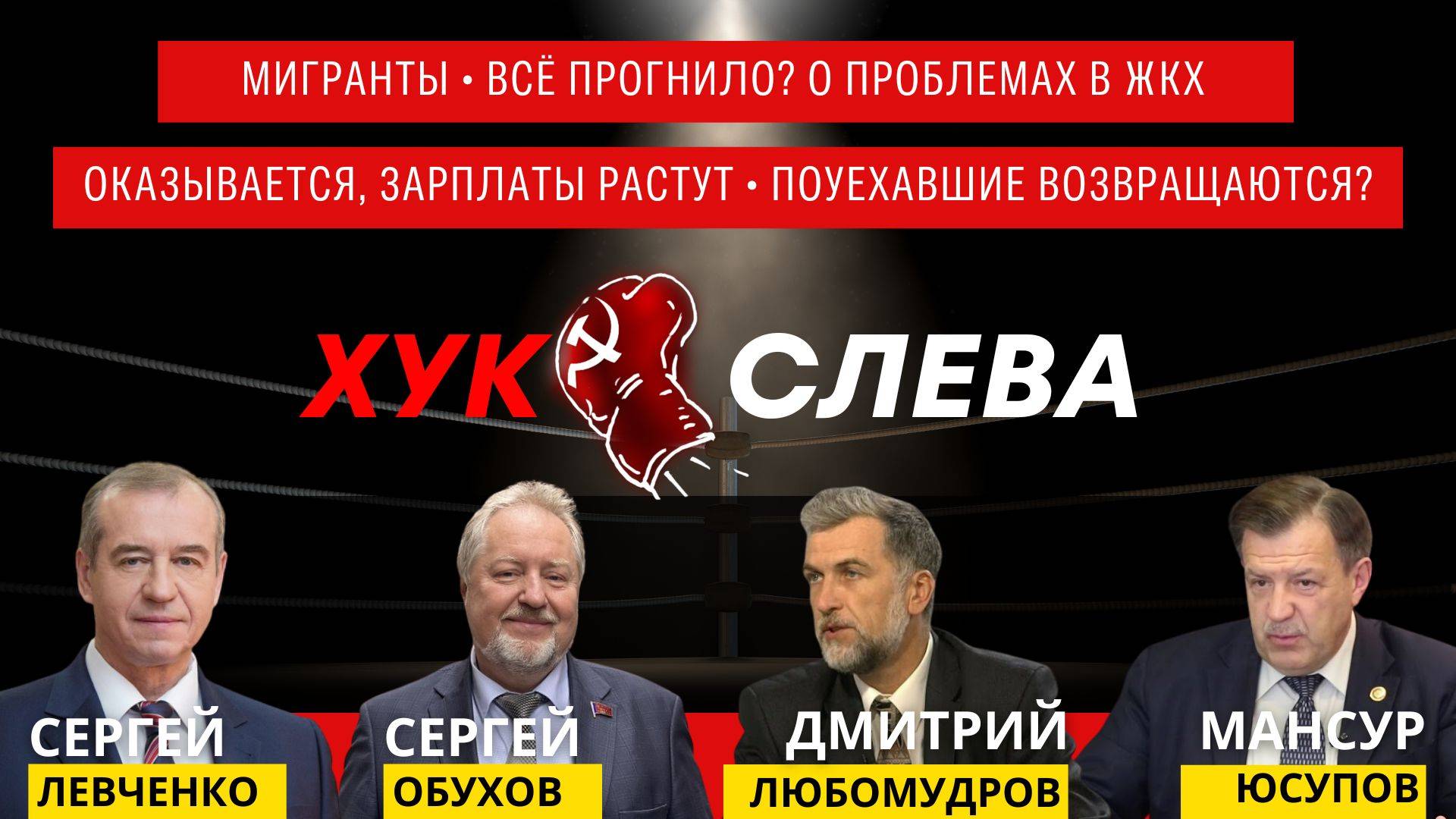22 октября (13:00, Мск) на «Красной Линии» стрим «Хук слева». В центре нашего внимания – громкие заявления и спорные предложения последней недели. 1. Правоохранительная система и миграционные потоки в Россиии. Почему те, кто должен бороться с незаконной миграцией, часто сами крышуют завоз гастарбайтеров? Эксперт – председатель Правления МОО «Национальный комитет общественного контроля», почётный ветеран МВД РФ Мансур Юсупов 2. Министр строительства и жилищно-коммунального хозяйства Российской Федерации Ирек Файзуллин доложил о готовности сферы жилищно-коммунального хозяйства к зимнему периоду на 98,9%. Реальная статистика износа систем – не обнадёживает. Будут ли в этом году замерзать целые города и районы и почему коммунисты настаивают на приватизации предприятий ЖКХ? Эксперт – член ЦК КПРФ, губернатор Иркутской области (2015-2019гг.), первый зампред Комитета Госдумы по энергетике Сергей Левченко 3. Что стоит за заявлением замглавы администрации Президента Максима Орешкина о том, что в России больше не будет дешёвого труда, поскольку зарплаты продолжают расти? Эксперт – экономист, член Совета по финансово-промышленной и инвестиционной политике Торгово-Промышленной Палаты РФ Дмитрий Любомудров 4. «Хорошие русские» возвращаются? Первый канал покажет документальный сериал Владимира Познера. Новость вызвала бурную реакцию в обществе. Кому выгодна реабилитация «возвращенцев»? Эксперт – член Президиума ЦК КПРФ, зампред Комитета Госдумы по развитию гражданского общества, вопросам общественных и религиозных объединений Сергей Обухов Ведущий Никита Попов приглашает экспертов обсудить серьёзные вызовы, с которыми столкнулась Россия. Не пропустите новый «Хук слева»!