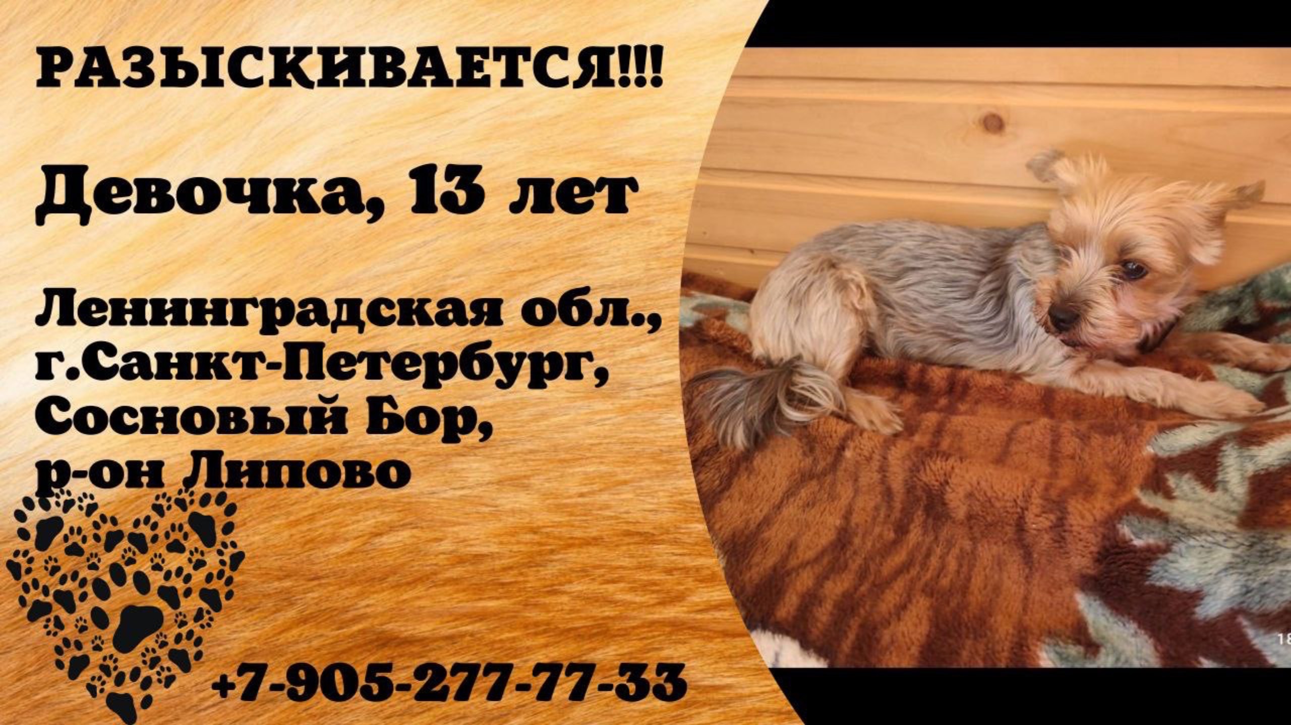 Пропала собака! Девочка, 13 лет. Ленинградская обл., г.Санкт-Петербург.