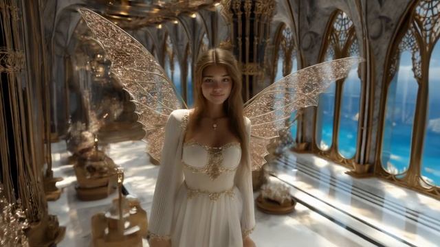 Окунитесь в мир, где бирюзовые моря встречаются со светящимися утесами, а разноцветный город возвышается на склоне горы, словно воплощенная в жизнь мечта. Город Сапфировых скал раскинулся вдоль береговой линии обширными террасами, сверкающими башнями, разноцветными куполами и высокими мостами. Издалека он выглядит как целый город-дворец, высеченный из камня и хрусталя, с основанием цвета слоновой кости, в сапфирово—голубых, сиреневых, розово-золотых и мягких пастельных тонах. Солнечный свет скользит по куполам, зеркальным балконам и многослойным садам, создавая впечатление элегантности, парящей над морем. Это фантастическое путешествие, созданное с помощью искусственного интеллекта, проведет вас по яркому, безмятежному прибрежному раю, где каждое пространство кажется роскошным, умиротворяющим и созданным с невероятной красотой: панорамные виды на колоссальный город-дворец, возвышающийся над сияющими бирюзовыми водами, Стеклянные дорожки и мосты, подвешенные высоко над скалами, Внутренние залы, украшенные витиеватой резьбой и драгоценными камнями. на открытых террасах, отделанных мрамором внутренних двориках и роскошных курортах через каждые несколько сцен появляются феи, запечатленные в полном фотореализме, с мягкими мерцающими крыльями.