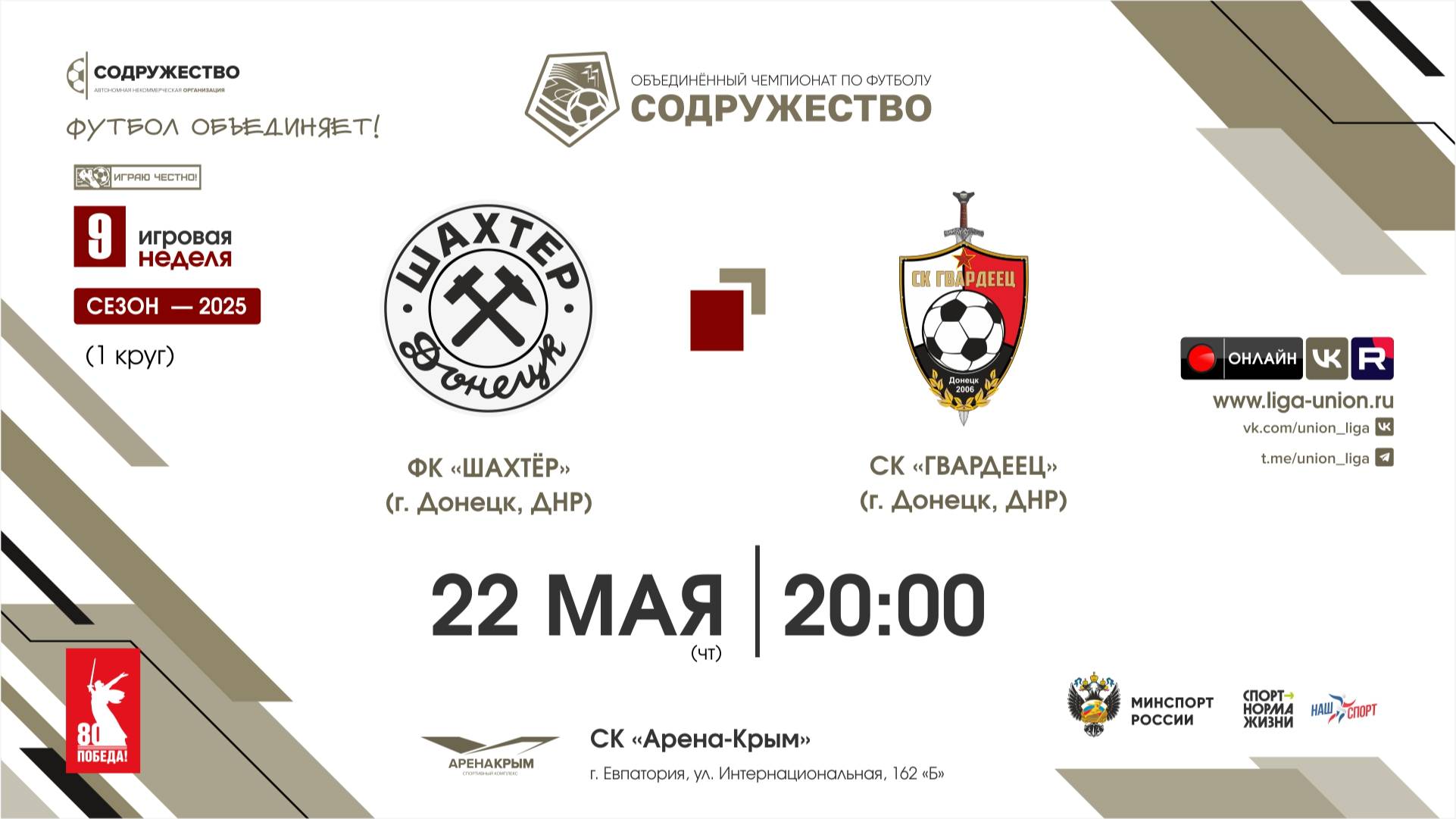 9 неделя (2025) | ФК «Шахтёр» (Донецк, ДНР) - СК «Гвардеец» (Донецк, ДНР) | 22.05.2025