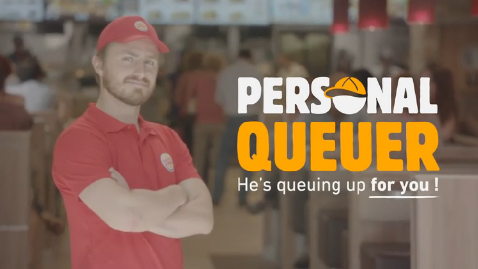 Сеть ресторанов быстрого питания Burger King только в этом году вернулась во Францию после 17-летнего перерыва, поэтому открытие каждого нового французского ресторана компании является важным событием и привлекает внимание огромного количества посетителей. Запуск ресторана в парижском квартале Ла-Дефанс не стал исключением. Специально к этому событию Burger King создала новую должность. В рядах сотрудников ресторана появились специальные люди, в обязанности которых входит стояние в очередях. Теперь любой посетитель Burger King, не желающий ждать длинной очереди, может скачать приложение и вызвать специально-обученного для этого сотрудника. Пока человек в форме Burger King теряет время в очередях, посетители могут использовать его с пользой.