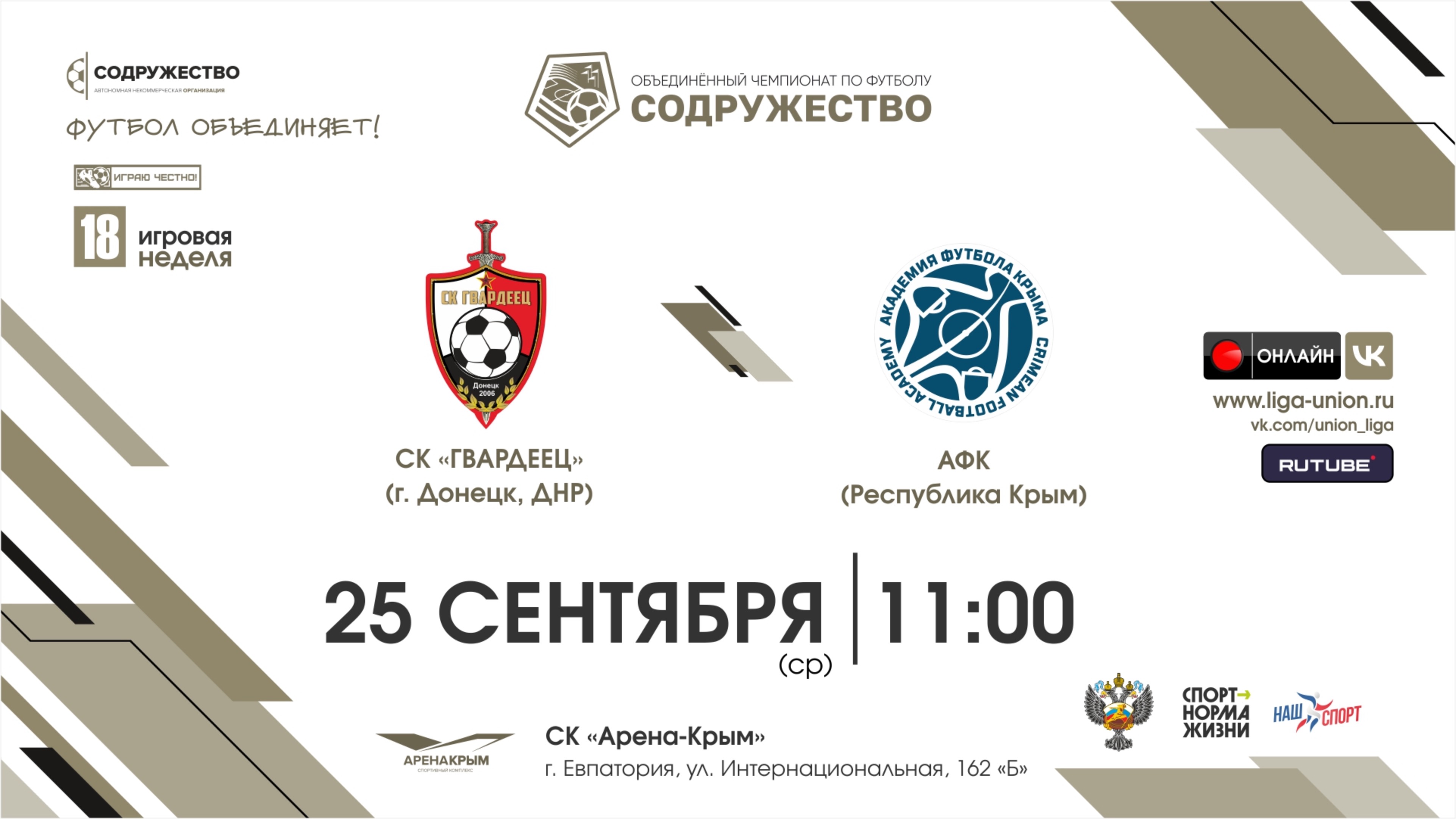 18 игровая неделя | СК "Гвардеец" (г. Донецк, ДНР) vs Академия футбола Крыма (Республика Крым)