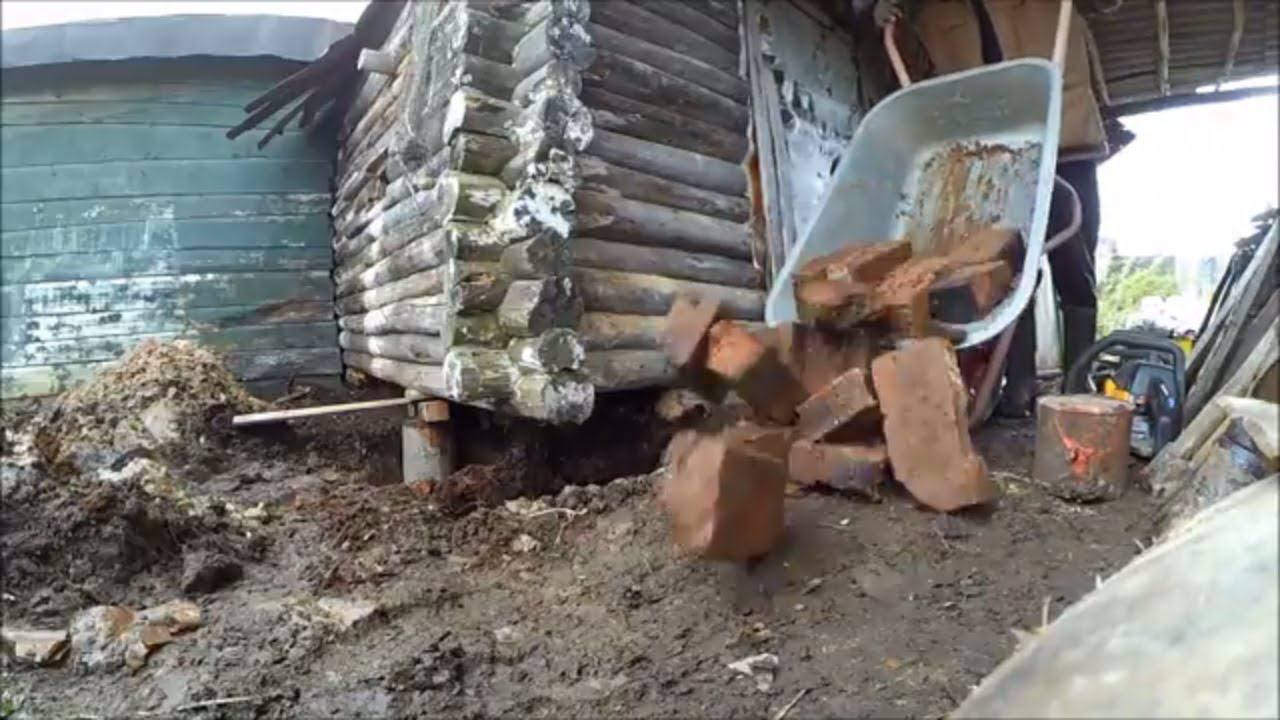 Ремонт сарая из небытия #3 // Деревенские будни, домкраты, топоры и др. // Влог