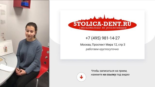 Ищите стоматолога в Москве? ▶ ? http://bit.ly/2SxmnfS ◀ Приглашаем Вас в клинику Столица! Современное оборудование, грамотные специалисты и благодарные отзывы пациентов. Приходите в любое удобно для Вас время, мы работаем круглосуточно! Узнать подробнее об услугах и записаться на бесплатную консультацию можно по ссылке выше! ??? Отзыв об исправления зубов с помощью элайнеров? https://www.youtube.com/watch?v=XdVTqufM_yw Наши пациенты о лечении в стоматологии Столица: https://www.youtube.com/watch?v=e-yBEMpKo34 Исправление прикуса в клинике Столица: https://youtu.be/7U7PX0xev4s Подпишитесь на канал клиники Столица, https://goo.gl/v1pNiA чтобы узнать больше о наших стоматологах и современных методах лечения зубов! ? Нажмите на цифры для навигации по времени ролика. 0:07 → Здравствуйте! Меня зовут Салхитдинова Шахноза. Моя история такова. Пришла я год назад к моему лечащему врачу, Тарба Лане Ивановне. Меня беспокоило то, что у меня неправильный прикус. Я толком не могла жевать. Стоматолог Москва. 0:22 → И когда я пришла, меня встретили с распростертыми объятьями, чему я очень рада. И на протяжении года мне лечили зубы. Стоматология Москва. 0:33 → И сейчас я чувствую себя прекрасно потому, что у меня правильный прикус, все зубы встали на свои места. И также проведен полный осмотр. Спасибо большое! Я очень рада, что записалась именно в эту клинику. Стоматолог Москва. Узнайте о стоимости услуг в Стоматологии Столица: ▶ ? http://medshort.ru/go/0edd8b ◀ Не пропустите следующий ролик! Подпишитесь сейчас на канал Стоматологии Столица по этой ссылке: https://goo.gl/bLz2Sq ? Официальный сайт: http://www.stolica-dent.ru/ ? Адрес стоматологической клиники: Г. Москва, Проспект мира, 12, стр. 3 ? +7 495-981-14-27 Мы в соцсетях: ? Instagram https://www.instagram.com/stolicadent/ ? Facebook https://www.facebook.com/DentStolica ? ВКонтакте https://vk.com/stolica_dent ? Twitter https://twitter.com/DentStolica Подготовлено совместно с Видеофирма (http://ВидеоДляМедицины.рф) #стоматолог , #исправлениеприкуса , #Столица