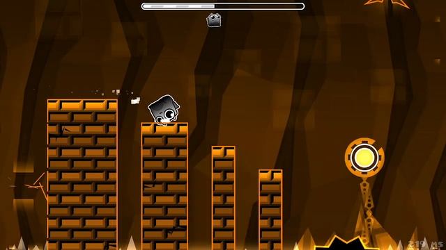 Очень сложный уровень из Fire Gauntletа.Прикольный геймплей и 1-ая монетка, но 2 монета вынесет тебе все мозги и нервы так-как она работает на рандом. ГАЙД по монетам: 1-ая монета: Тут всё очень легко. Нужно волной влететь в пролёт на 00:42-00:43. Монета будет в пролёте. 2-ая монета: Вторая монета даётся автоматически, если собрать ключ в одной из колонн на мини-волне на 62%. 3-я монета: Для сбора третьей монеты нужно взять ключ на 74%, после него на следующем этапе куба нужно перепрыгнуть синий батут, оттолкнуться от синей сферы и вернуться на исходный путь.