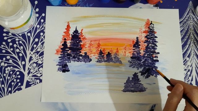Зимний рассвет. Правополушарное рисование.