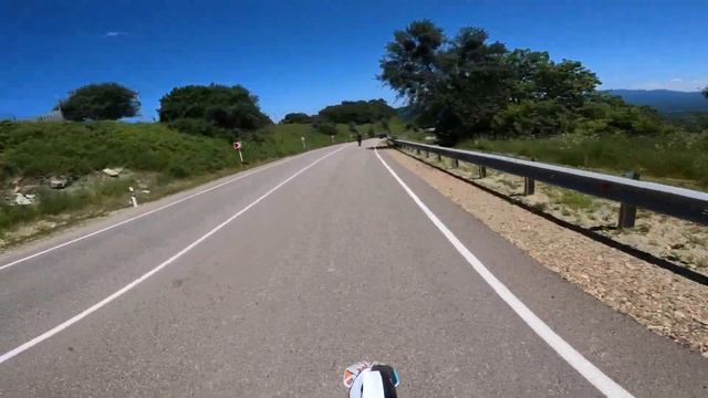 Встретили ДПС. Жёстко наваливали по трассе на Kayo K1 и RM Crosstrec. Чуть не утопили мот в реке