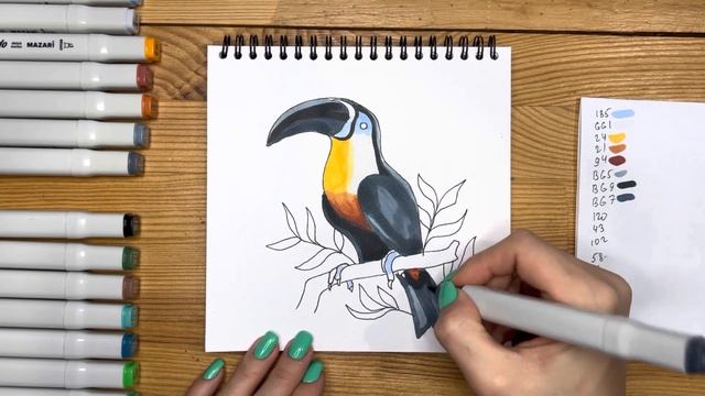 Рисунок скетч маркерами "Тукан" для скетчбука | Срисовка картинки для начинающих