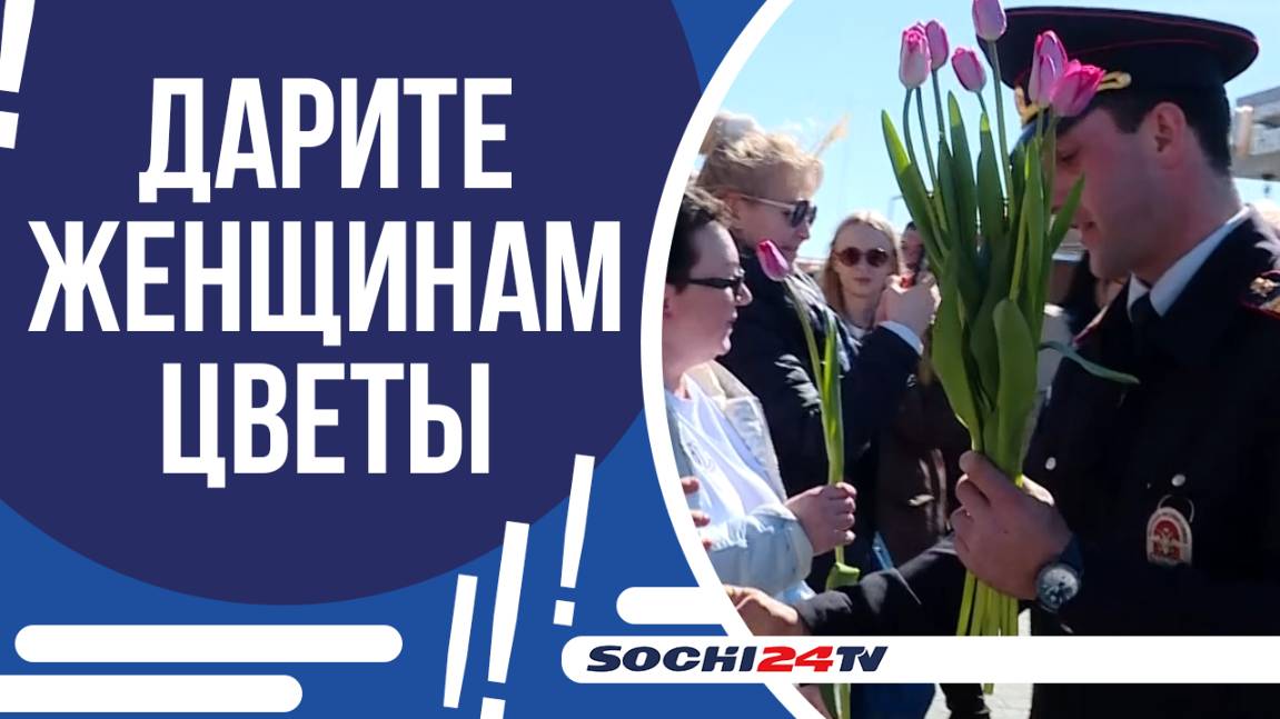 НА НАБЕРЕЖНОЙ СОЧИ ЖЕНЩИН ПОЗДРАВЛЯЛИ С ПРАЗДНИКОМ И ДАРИЛИ ЦВЕТЫ!