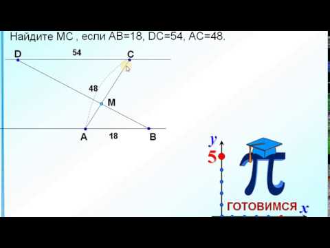 Отрезки АВ и DC лежат на параллельных прямых, а отрезки АС и BD пересекаются в точке М. Найдите МС, если АВ=18, DC=54, АС=48.