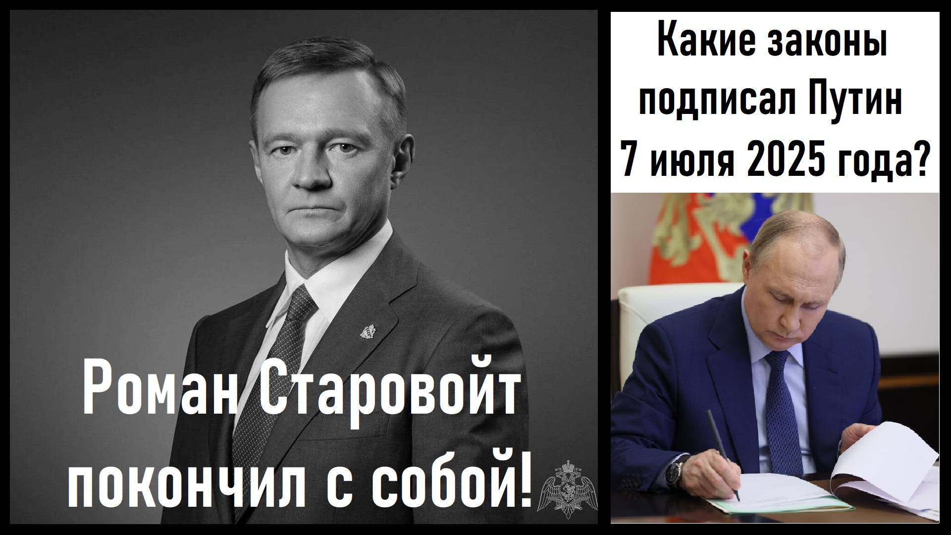 Роман Старовойт покончил с собой! | Какие законы подписал Путин? | Лента новостей 07.07.2025