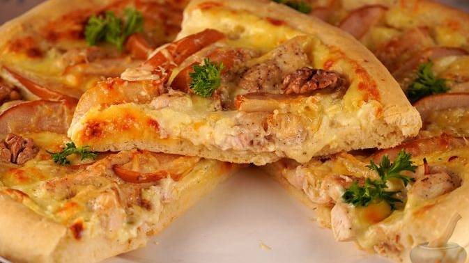 Нетипичный компонент делает вкус сложнее и утончённее. ПИЦЦА С КУРИЦЕЙ, ГРУШЕЙ И СЫРОМ