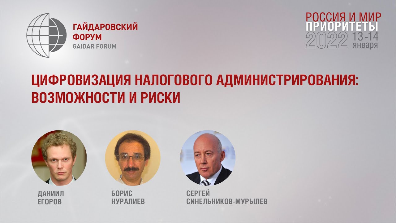 Участники: Даниил Егоров, руководитель Федеральной налоговой службы (ФНС России) Борис Нуралиев, основатель, директор ООО «1С» Сергей Синельников-Мурылев, ректор Всероссийской академии внешней торговли Цифровое развитие налогового администрирования снизит расходы бизнеса, связанные с соблюдением налогового законодательства, и обеспечит большую устойчивость государственных финансов с минимальными издержками. Однако цифровизация налоговых отношений может потребовать не только модернизации систем администрирования, но и изменения самой налоговой системы, дизайна налогов, затрагиваемых цифровизацией, и, как следствие, деловых практик в масштабах экономики в целом. С учетом важнейшей роли налогов в системе социально-экономических отношений последствия могут быть значительными и не всегда легко прогнозируемыми. Вопросы для обсуждения: • Упрощение или усложнение: куда движется система налогового администрирования? • Где пределы автоматизации расчета налогов в современных условиях? • Налоговые эксперты и алгоритмы: конкуренция или кооперация? • Каких цифровых новаций ожидать налогоплательщикам в среднесрочной перспективе?