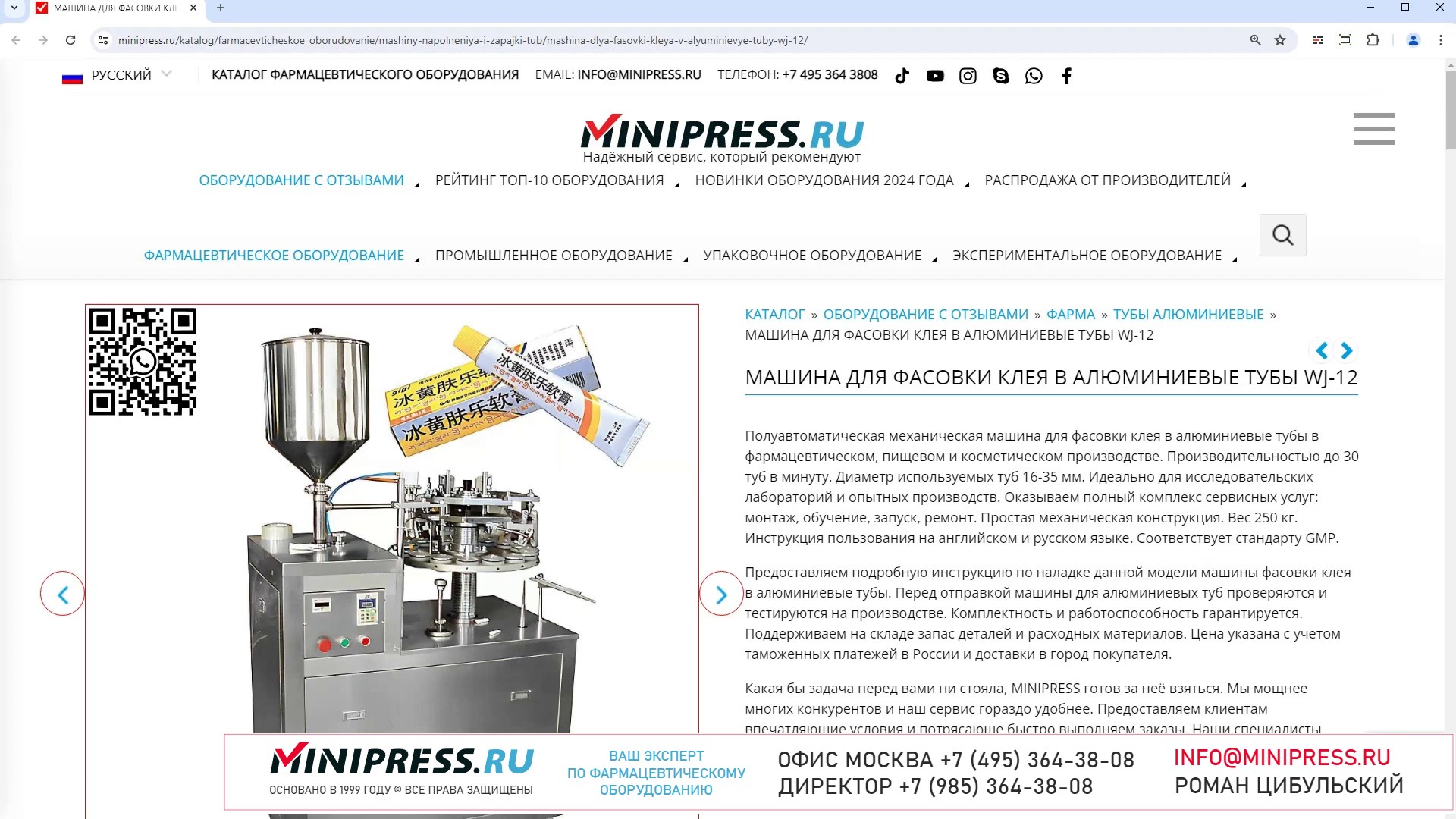 Каталог компании MINIPRESS.RU предлагает большой выбор оборудования для извлечения таблеток и желатиновых капсул из блистерной упаковки. Многие настольные и полуавтоматические ДЕ-БЛИСТЕРНЫЕ машины мы предлагаем для использования в фармацевтических производствах лекарств. Компания Романа Цибульского MINIPRESS.RU занимается поставкой большого ассортимента фармацевтического оборудования из Китая, Кореи, Индии, Европы и других стран. Мы выполняем работы по поиску, подбору, закупке, доставке, и таможенной очистке оборудования с доставкой в любой город России и стран СНГ. Основатель и ведущий специалист компании - Роман Цибульский. Компания MINIPRESS.RU (зарегистрированный товарный знак) основана в 2000 году. Онлайн каталог оборудования MINIPRESS.RU ежедневно посещают несколько тысяч человек. Мы развиваем крупные каналы в социальных сетях, посвященные тематике фармацевтического оборудования. Вы можете посмотреть видео ролики об оборудовании, которым мы занимаемся. Фактически у нас самый большой в России многоязычный каталог фармацевтического оборудования с фотографиями, описаниями, и что более важно с ценами и видео демонстрацией оборудования в работе. Подбор оборудования и консультации ведет сам владелец компании - Роман Цибульский. Компания имеет огромный опыт в работе с различным оборудованием, технологиями. Помогаем клиентам выбрать модель фармацевтического оборудования, которое сможет решить поставленную задачу. Наши специалисты помогают рекомендациями в решении проблем по эксплуатации оборудования. Наша компания имеет офис в г.Шанхай и несколько менеджеров, которые помогают в работе с китайскими поставщиками. Мы долго сотрудничаем и дружим с этими специалистами. Китайские поставщики ценят нас как постоянных партнеров. Роман Цибульский Директор компании Минипресс Поставка фармацевтического оборудования в Россию Пишите: info@minipress.ru Gmail: boss.minipress@gmail.com Офис в Москве +7(495)364-38-08 Мобильный +7(985)364-38-08 (WhatsApp) Каталог оборудования https://www.Minipress.ru/katalog/ МИНИПРЕСС.РУ В СОЦИАЛЬНЫХ СЕТЯХ FB https://facebook.com/roman.tsibulsky YOUTUBE https://www.youtube.com/@farmacevticheskoe_oborudovanie INSTAGRAM https://www.instagram.com/farmacevticheskoe_oborudovanie/ #технологии #гранулятор #ингредиент #свойства #миксер #поставки #заработок #питатели #гранулы #фабрика