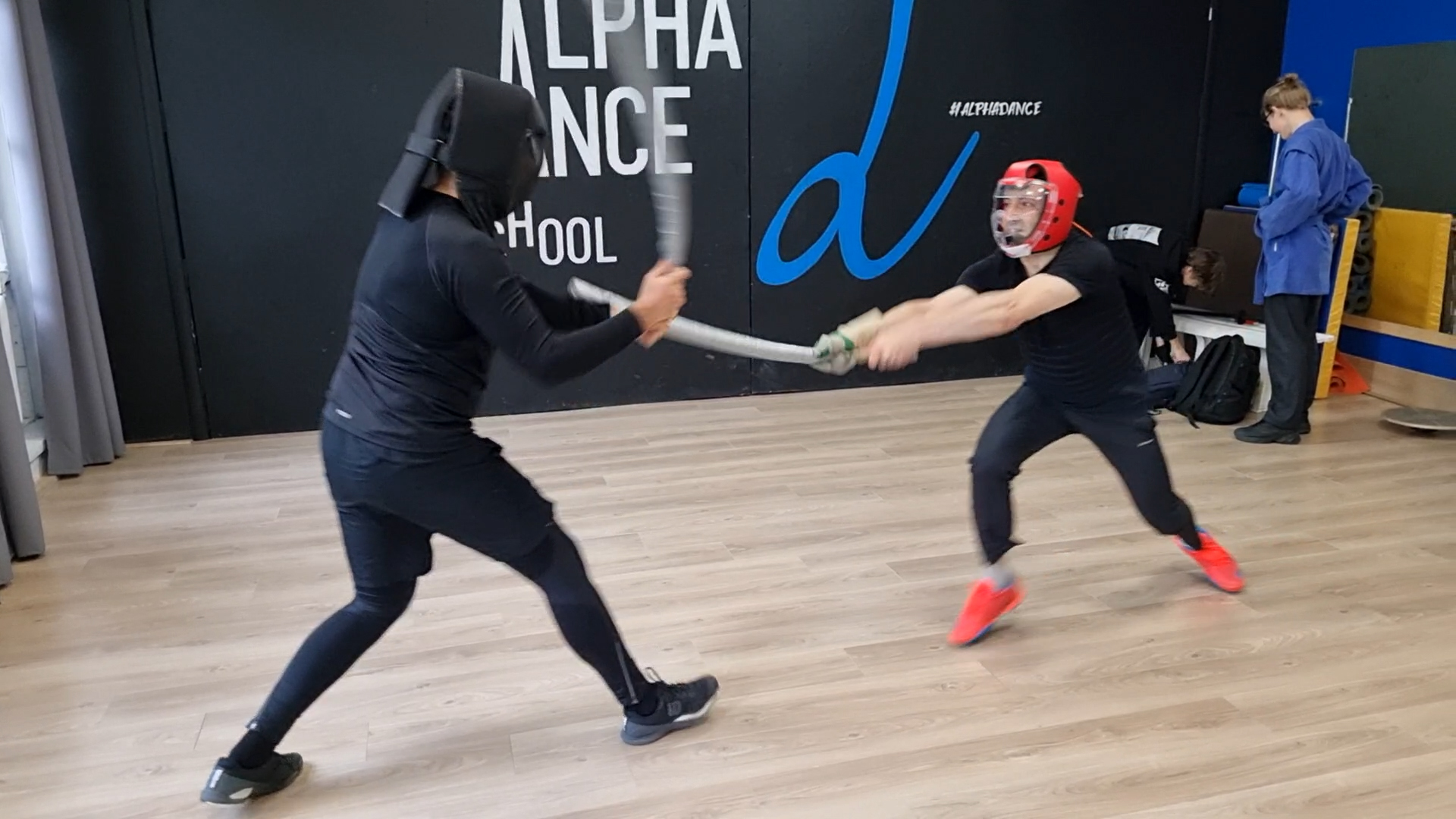 Кендзюцу - японское фехтование - спарринг на длинных мечах чанбара на занятии в Katana Club