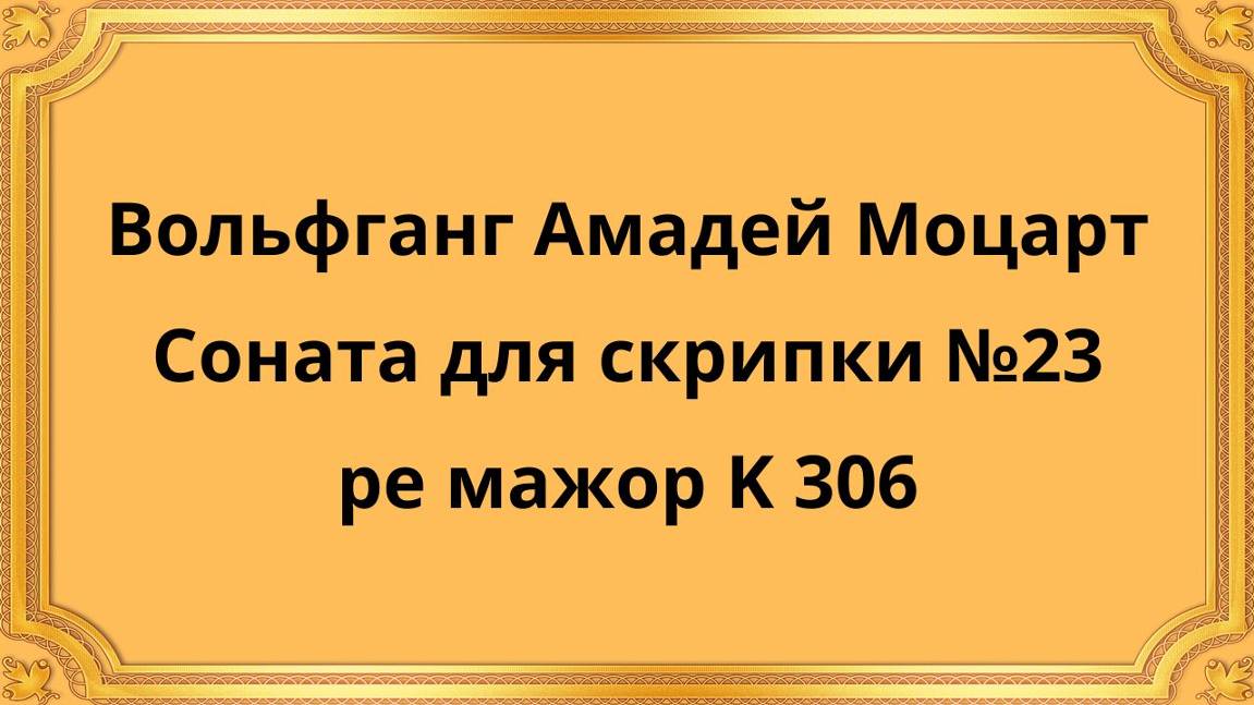 Вольфганг Амадей Моцарт Соната для скрипки №23 ре мажор K 306