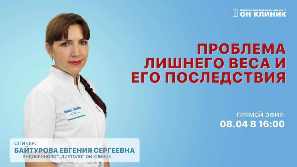 Проблема лишнего веса и его последствия. Метаболический синдром. Отражение в зеркале вас не радует, лишний вес заставляет искать одежду в отделе «Size+». А к лету так хочется похудеть и на пляже щеголять в открытом купальнике? Приглашаем вас на бесплатный вебинар «Проблема лишнего веса и его последствия. Метаболический синдром». Этот прямой эфир с врачом будет особенно полезен тем, кто: • худел не однократно, но так и не смог удержать вес • не знает, с чего начать путь к здоровому питанию • испытывает стресс и постоянно его заедает • хочет повысить свою самооценку и уверенность С вами на связи будет диетолог-эндокринолог ОН КЛИНИК Евгения Байтурова. ✅ На вебинаре Врач расскажет, откуда берется лишний вес и как его корректировать. Вы сможете прямо во время эфира подсчитать свой индекс массы тела. А главное, узнаете, как похудеть и удержать вес, при этом не испытывая стресса. Что такое метаболический синдром и каковы его последствия. Если не уделять внимания своему питанию сейчас, то со временем есть риск набрать лишние килограммы. • Начало вебинара – 8 апреля в 16.00 по мск • Ссылка на вебинар • Длительность 40 минут • Вебинар бесплатный Записать на консультацию к Байтуровой Евгении Сергеевны можно по ссылке: https://clck.ru/ehg5t ?Узнайте больше о способах диагностики и лечения в ОН КЛИНИК! Подпишитесь на наш канал! Телеграм: https://t.me/onclinicru ВКонтакте: https://vk.com/onclinicru Одноклассники: https://ok.ru/profile/577149703061