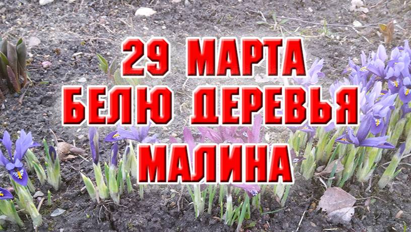 29 марта. Белю деревья, обрабатываю малину