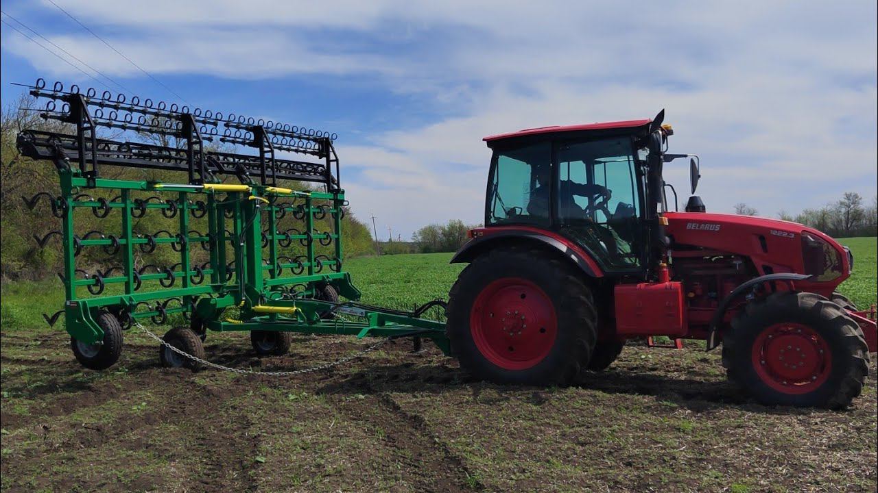МТЗ-1222.3 первый выезд в поле после зимы с новым культиватором.