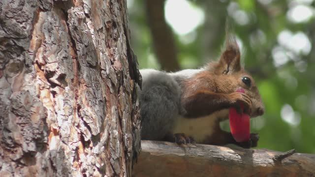 Вторая белочка - это точно самочка и кажется она беременная. Но её партнер не испытывает никаких чувств по этому поводу. Когда дело касается еды, то у него безусловный приоритет, а ей уже то, что останется. Будем следить, чтобы у нее было достаточно еды.