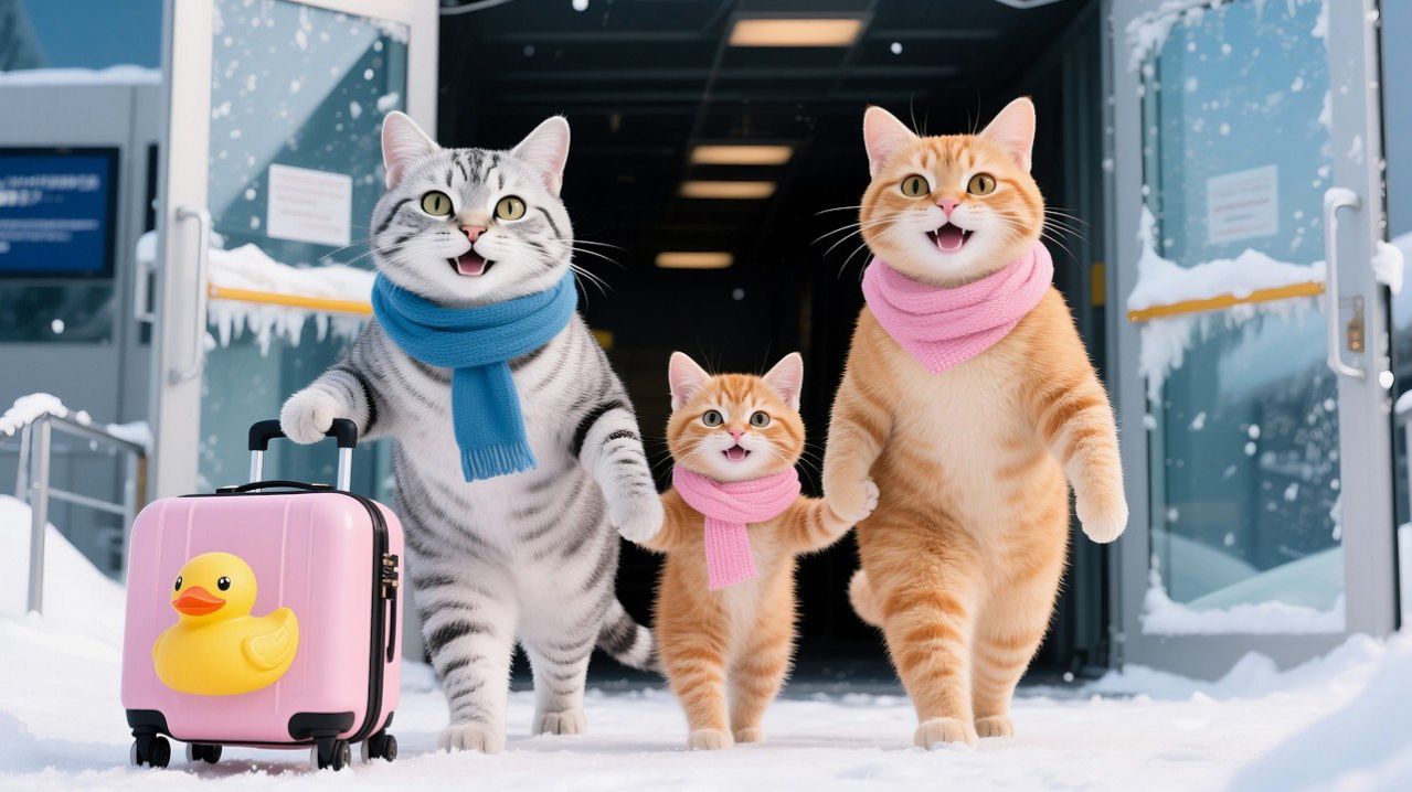 Семья Рыжика воссоединяется с моти-пингвином: катание на лыжах, рыбалка и отдых в снежном онсэне!