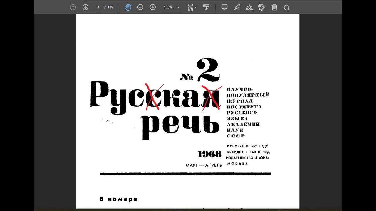 № 2-1968 г. из журнала "РУС(с)КА(я) РЕЧЬ" ИРЯ АН СССР - статья.