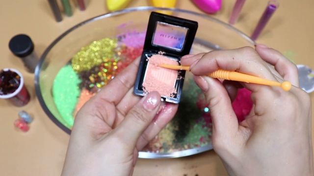 Играем со слаймом! Смешиваем тени , пенопластовые шарики и блёстки в прозрачной слизи!