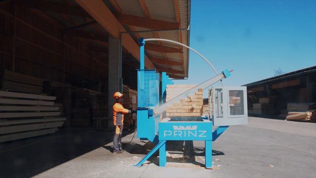 PRINZ Bretterpaketsägen mit bogengeführter Schnittführung bilden das Bindeglied zwischen den auf Rädern montierten fahrbaren Kappsägen und parallel geführten Paketsägen. Da die Säge fährt sind sie sehr platzsparend und der starke Führungsbogen garantiert eine hohe Schnittgenauigkeit von +/-2mm.