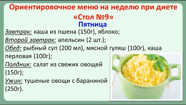 Стол №9 при сахарном диабете Меню на неделю и рецепты