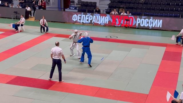 06.04.2025 в Москве прошли Всероссийские соревнования по кудо «Памяти павших бойцов спецподразделений ГРУ». Бой в категории 240 ед. 16-17 лет. В синем Дмитрий Карасев (Воронежская обл.), в белом Олег Разумов (г. Москва, СК «Прайд»).
