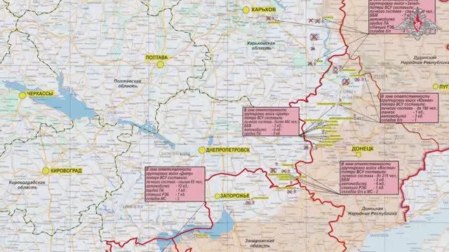 Смотрите плейлист Минобороны России новости https://rutube.ru/plst/1044565 Сводка Министерства обороны Российской Федерации о ходе проведения специальной военной операции по состоянию на 27 августа 2025 г. Вооруженные Силы Российской Федерации продолжают проведение специальной военной операции. 💥 Подразделения группировки войск «Север» нанесли поражение живой силе и технике двух механизированных, двух десантно-штурмовых, танковой бригад, штурмового полка ВСУ и полка нацгвардии в районах населенных пунктов Кондратовка, Старая Гута, Павловка, Андреевка, Юнаковка и Садки Сумской области. 💥 На Харьковском направлении нанесено поражение подразделениям механизированной и мотопехотной бригад ВСУ в районах населенных пунктов Волчанск и Меловое Харьковской области. ▪️ ВСУ потеряли свыше 175 военнослужащих, четыре боевые бронированные машины, шесть автомобилей, семь артиллерийских орудий и две станции радиоэлектронной борьбы. Уничтожены три склада боеприпасов и пять складов материальных средств. 📍 Подразделения группировки войск «Запад» улучшили тактическое положение. Нанесли поражение формированиям механизированной, двух штурмовых бригад ВСУ и бригады теробороны в районах населенных пунктов Малиновка, Изюм, Купянск Харьковской области и Дробышево Донецкой Народной Республики. ▪️ Потери противника составили свыше 230 военнослужащих, семь боевых бронированных машин, 15 автомобилей, четыре орудия полевой артиллерии, из них три западного производства и четыре станции радиоэлектронной борьбы. Уничтожены четыре склада боеприпасов. 📍Подразделения «Южной» группировки войск заняли более выгодные рубежи и позиции. Нанесли поражение живой силе и технике двух механизированных и аэромобильной бригад ВСУ в районах населенных пунктов Александро-Шультино, Серебрянка И Дружковка Донецкой Народной Республики. ▪️ Противник потерял до 190 военнослужащих, танк и три автомобиля. Уничтожен склад боеприпасов. 🚩 Подразделения группировки войск «Центр» в результате наступательных действий освободили населенный пункт Первое Мая Донецкой Народной Республики. 💥 Нанесено поражение формированиям четырех механизированных, трех десантно-штурмовых, егерской бригад ВСУ, двух бригад морской пехоты, бригады теробороны и двух бригад нацгвардии в районах населенных пунктов Новотроицкое, Красноармейск, Доброполье, Торецкое, Кутузовка, Родинское, Димитров, Золотой Колодезь и Новониколаевка Донецкой Народной Республики. ▪️ Потери украинских вооруженных формирований составили более 400 военнослужащих, три боевые бронированные машины, шесть автомобилей и пять артиллерийских орудий. 📍 Подразделения группировки войск «Восток» продолжили продвижение в глубину обороны противника. Нанесено поражение живой силе и технике трех механизированных бригад, штурмового полка ВСУ и двух бригад теробороны в районах населенных пунктов Великомихайловка, Березовое, Гавриловка, Сосновка, Январское Днепропетровской области и Новогригоровка Запорожской области. ▪️ Противник потерял до 215 военнослужащих, две боевые бронированные машины, шесть автомобилей и станцию радиоэлектронной борьбы. Уничтожены склад боеприпасов и склад материальных средств. 💥 Подразделения группировки войск «Днепр» нанесли поражение формированиям механизированной бригады и бриг