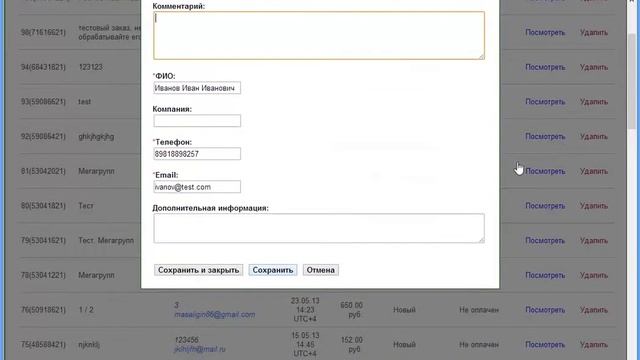 Добавление заказов.