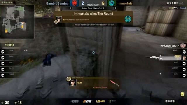 Gambit vs Immortals, map 1 cobblestone, Grand Final, PGL Major Kraków 2017 best rounds