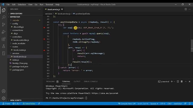 Explanation: NodeJS code to connect MYSQL with CRUD operation. DB: Stored Procedure, Table structure explaining. NodeJS: Routes, Controller, Service & DB Config coding explaining Nodejs API / REST API testing via Postman tool. ----------------------------------------------------------- Nodejs - API: application Step 1: Create a folder: myfirstapi open that folder in VS Code. Step 2: In Terminal type npm init and hit enter create starting file name: index.js npm install --save express npm install --save cors npm install --save -g nodemon --------------------------------------------------------------- NodeJS API - MSSQL : https://youtu.be/_czwZpFscEE NodeJS API - MYSQL : https://youtu.be/FZg9Pm6a7kA --------------------------------------------------------------- //1) Insert: //localhost:4000/api/book // { // "ActionFlag": "INSUPD", // "Data": { // "BookId": 0, // "BookName": "Thayumanavan", // "Author": "Bala", // "IsActive": 1 // } // } //2) Update: // { // "ActionFlag": "INSUPD", // "Data": { // "BookId": 101, // "BookName": "Thayumanavan", // "Author": "Balakumaran", // "IsActive": 1 // } // } //3) getAllData (GET) //localhost:4000/api/book //4) getDataById (GET) //localhost:4000/api/book/101 //5) deleteDataById (DELETE) //localhost:4000/api/book // { // "ActionFlag": "DELETE", // "Data": { // "BookId": 103 // } // } -------------------------------------------------------------- PlayList: (MEAN Stack Guide) https://www.youtube.com/playlist?list=PL0YIgTrUMXlhUDCkxGaQA741Mf3eYjuft PlayList: (Angular Guide) https://www.youtube.com/playlist?list=PL0YIgTrUMXlhnQCc19_zKmsD7h9d7_SpD PlayList: (Real-Time Project Design) https://www.youtube.com/playlist?list=PL0YIgTrUMXlgC9J3jq_KJSrVaSKTkcQPB Go to website (www.vapstudent.in) then click on "Blog" for CLI commands