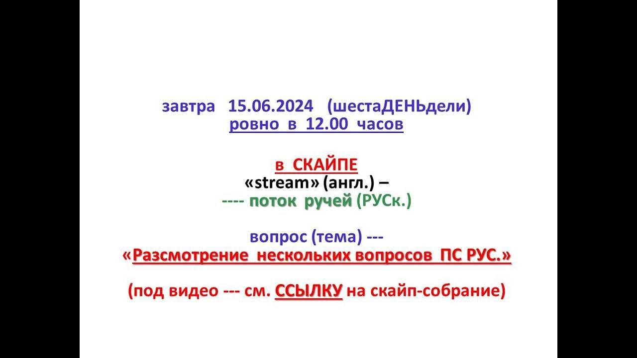 объЯВление!! ССЫЛКА в скайпе - на собрание онлайн в 12.00 15.06.2024 (см. под ВИДЕО).