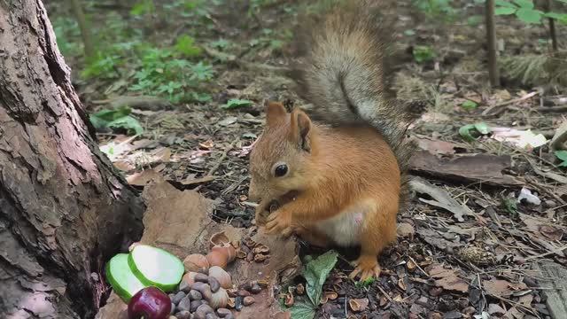 Белка Рыжик грызёт кедряшки