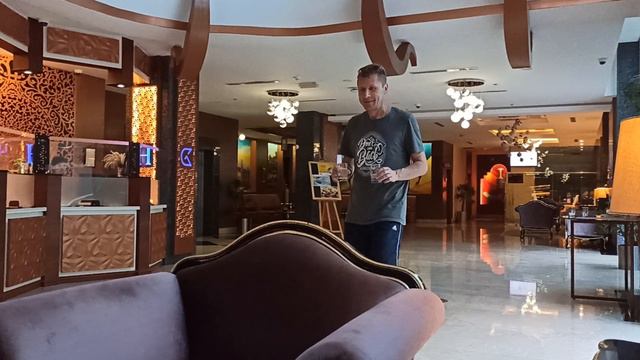 Муж за мной ухаживает!В холле нашего отеля.