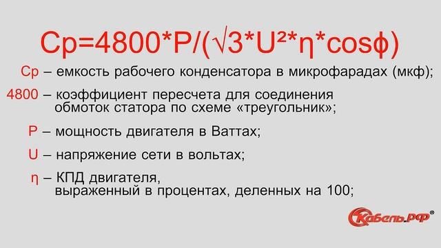 Расчет емкости рабочего конденсатора
