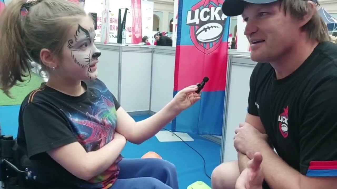 Юный журналист журнала "Агрегатор счастья" на фестивале "Спортлэнд" взяла интервью у Мастера спорта России международного класса по регби Андрея Гарбузова