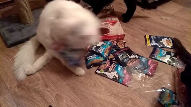 Котик Бим решил сам открыть пакетик с кормом