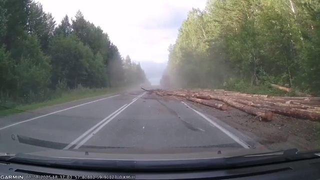 В Свердловской области лесовоз решил обогнать легковушку,но что-то пошло не так.