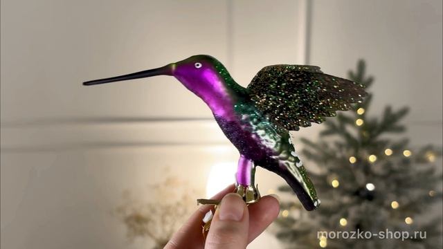 Ёлочная игрушка КОЛИБРИ ЮЖНЫХ ОСТРОВОВ, на клипсе, стекло, темно-зеленая, 13 см, NB0589-2