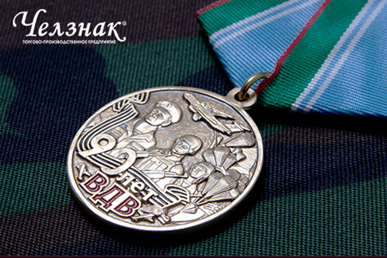 Медаль «90 лет ВДВ» https://chelznak.ru/shop/90_vdv/item_17403/ Наградная продукция к 90-летию ВДВ https://chelznak.ru/shop/90_vdv/ Медаль выполнена из латуни высокого качества, имеет характерный золотистый оттенок. Описание медали: 1. На аверсе на заднем плане виден летящий самолет, справа от которого располагаются раскрытые парашюты. Ближе находятся трое военных, держащих в руках оружие. Передний план украшает георгиевская лента, где изображена цифра «90». Внизу имеется надпись: «ВДВ», по краям которой два взлетающих самолета; 2. На реверсе вверху имеется раскрытый парашют, возле которого два самолета. Ниже имеются даты, определяющие временной период, прошедший с момента появления подразделения. Под датами располагается надпись: «Никто кроме нас». Служащие в ВДВ не раз доказывали свою доблесть. На их плечи ложилось немало важных операций, которые проходили в наиболее сложных условиях. Это военные, которые отличились в стратегически важных операциях в ходе Российско-чеченского конфликта. Это люди, которые выполняли боевые задания в Афганистане. Особые заслуги, выдающиеся подвиги и патриотизм – вот что характеризует данное подразделение. Получить юбилейную медаль можно не только официально, но и заказав ее на сайте Челзнак. Здесь действует онлайн-заявка, однако если вы сомневаетесь или хотите получить консультацию, достаточно позвонить нам. Менеджеры прояснят все непонятные моменты и подскажут актуальные расценки. Кроме того, мы предлагаем приобрести не только стандартный комплект, но и подарочный, в состав которого входит специальный футляр для хранения памятной медали и удостоверения к нему. Данная награда не является государственной, предназначена для вручения находящимся на службе, отслужившим десантникам и ветеранам ВДВ.