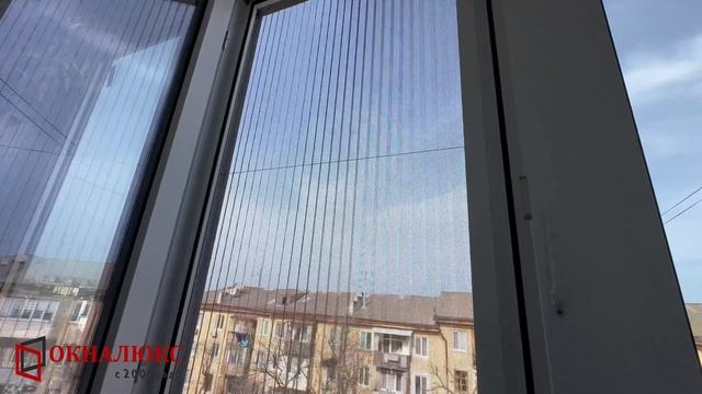 Две москитные сетки плиссе установленные на балконе. Сдвижные сетки в Севастополе. ОКНАЛЮКС