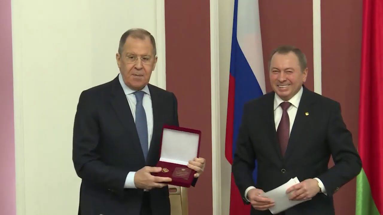 Министр иностранных дел Российской Федерации С.В.Лавров и Министр иностранных дел Республики Беларусь В.В.Макей подписывают Постановление совместного заседания коллегии Министерства иностранных дел Российской Федерации и коллегии Министерства иностранных дел Республики Беларусь, Плана консультаций между Министерством иностранных дел Российской Федерации и Министерством иностранных дел Республики Беларусь на 2021 год, Минск, 26 ноября 2020 года